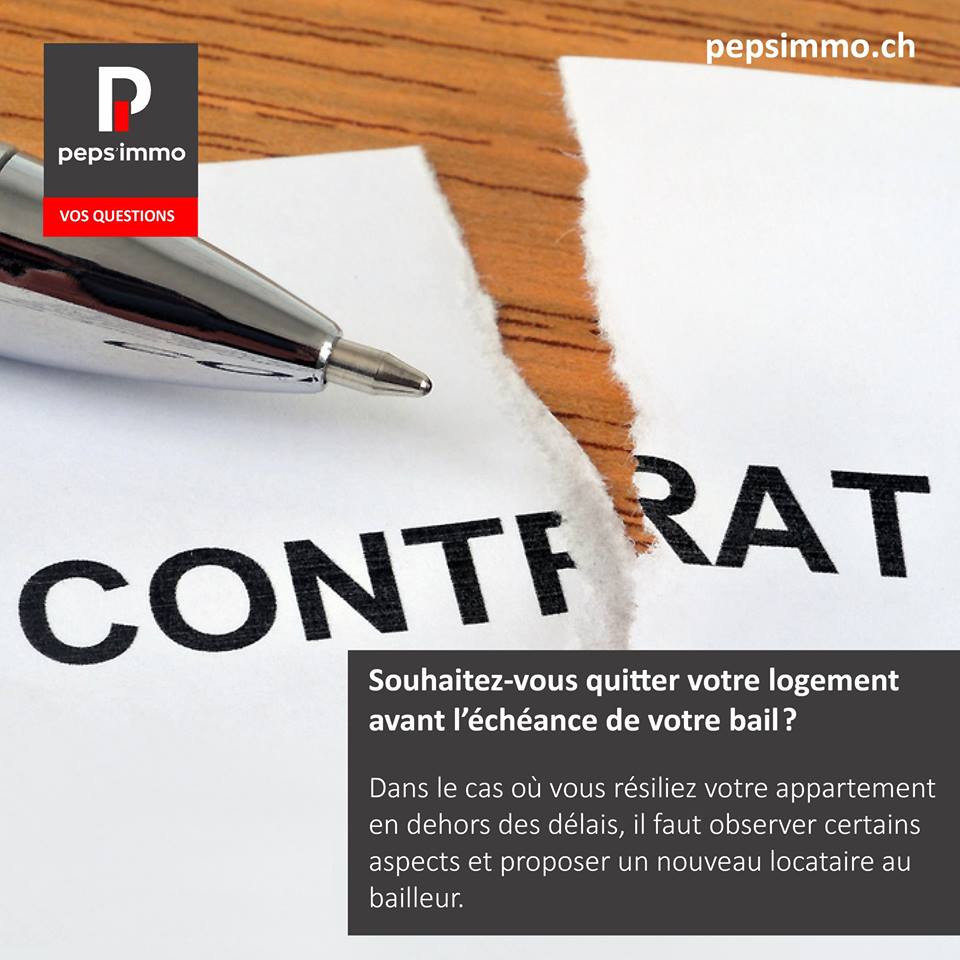Vous souhaitez quitter votre logement avant l’échéance de votre bail ? Dans le cas où vous résilier votre appartement en dehors des délais, il faut observer certains aspects et proposer un nouveau locataire au bailleur. Premièrement il y a lieu de notifier au bailleur par lettre recommandée un courrier de résiliation. Puis chercher un nouveau locataire potentiel, solvable, ayant des revenus suffisamment élevés pour prétendre au logement. Par mesure de précaution, présentez plusieurs dossiers au bailleur. Le bailleur n’est pas tenu de louer au locataire proposé mais s’il refuse un locataire solvable, il est tenu de chercher un remplaçant. Enfin, vous serez libéré à la date de reprise par le nouveau locataire. Si aucun nouveau locataire n’est trouvé, vous devez malheureusement payer le loyer et les charges jusqu’à la prochaine date de résiliation ordinaire.