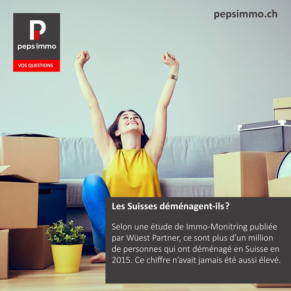 Selon une étude de Immo-Monitring publiée par Wüest Partner, ce sont plus d’un million de personnes qui ont déménagé en Suisse en 2015. Ce chiffre n’avait jamais été aussi élevé. Seul un tiers des personnes est resté dans la même commune contre les deux tiers restant qui, au contraire, ont changé de municipalité. Cette évolution est liée à quatre facteurs principaux notamment une hausse de l’offre des logements, une baisse des loyers mais également l’évolution des infrastructures des transports qui rendent certaines communes plus accessibles. Les cantons les plus concernés par rapport à leur population sont Genève, Vaud et Bâle-Ville.